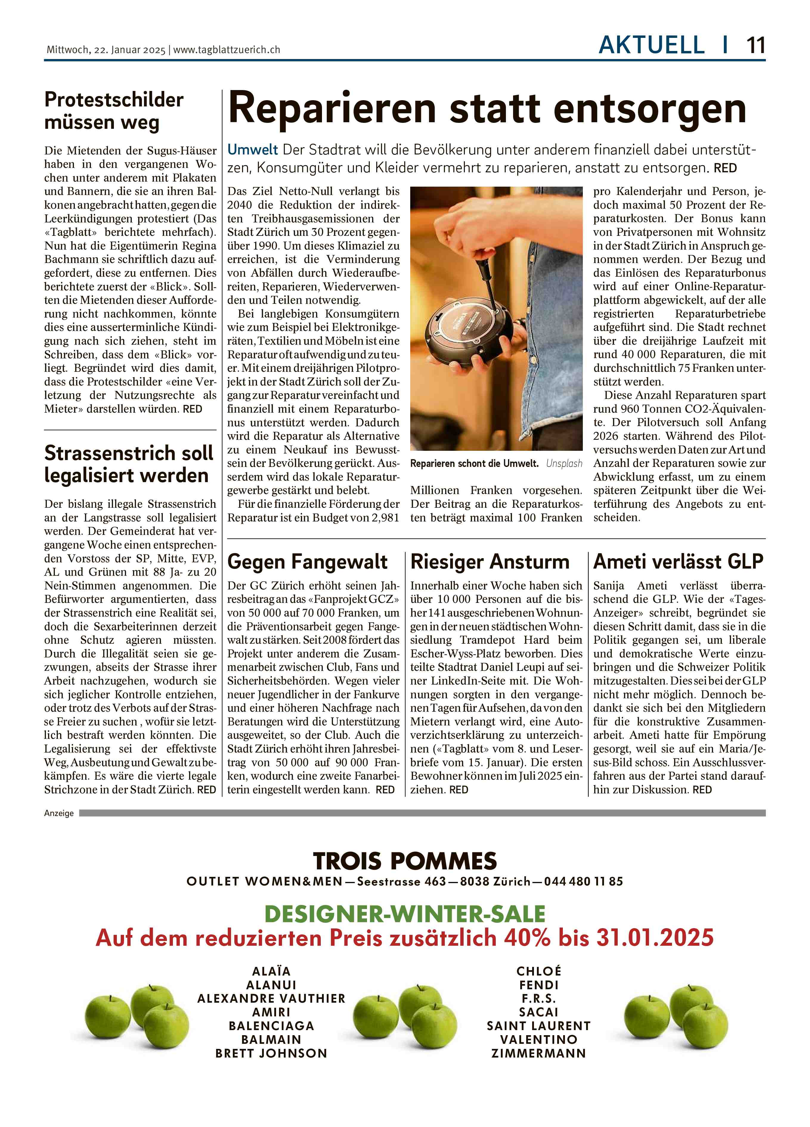 - Tagblatt der Stadt-Zürich: Protestschilder müssen weg
